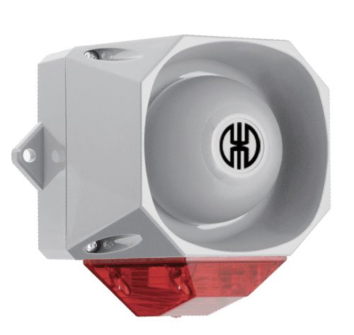 Záblesková/ akustická siréna WM 32 tónov 9-60V DC GY/RD